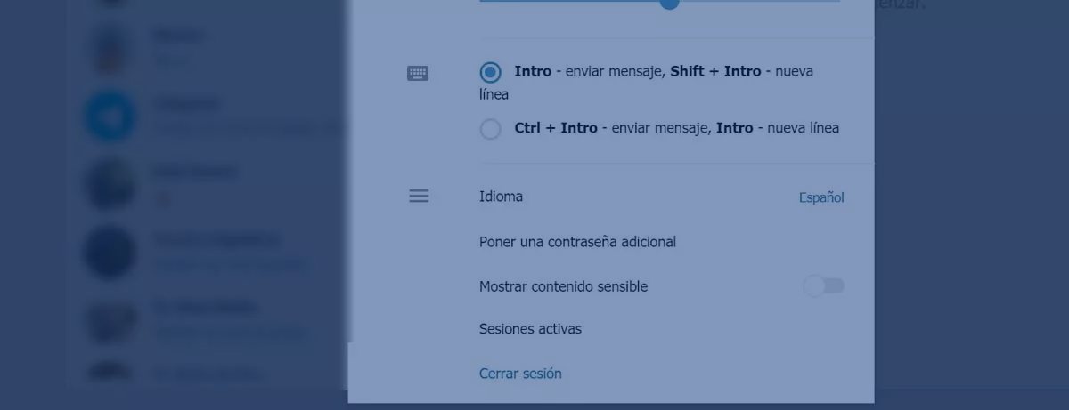 También contamos con la opción de gestionar algunas de las opciones de seguridad como la contraseña de nuestra cuenta o ver las sesiones que están activas, como hemos explicado anteriormente. Pero no nos deja elegir quienes pueden agregarnos a grupos o canales, así como tampoco podemos elegir quienes pueden ver nuestro perfil. En pocas palabras, nos podemos encontrar con las opciones más básicas, por lo que si quieres una configuración completa vas a tener que utilizar la versión para móviles.