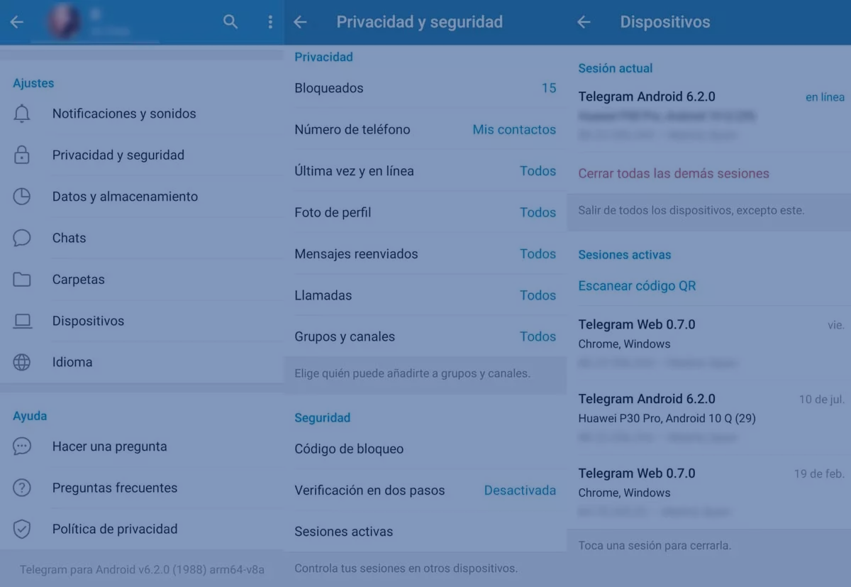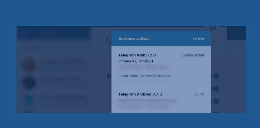 Otro detalle que creemos que debes de tener en cuenta es que las sesiones abiertas también se pueden ver desde la versión web, por lo que es importante que sepas cómo usar Telegram Web.
